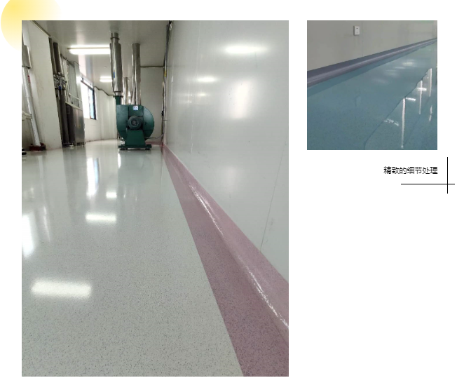 其破壁车间地坪工程打造出简洁的即视感,搭配浅暖色调的圆弧角工艺,加上各种边角的细节处理,简洁中又给予人温馨的感受,最终达成完美的成品效果。